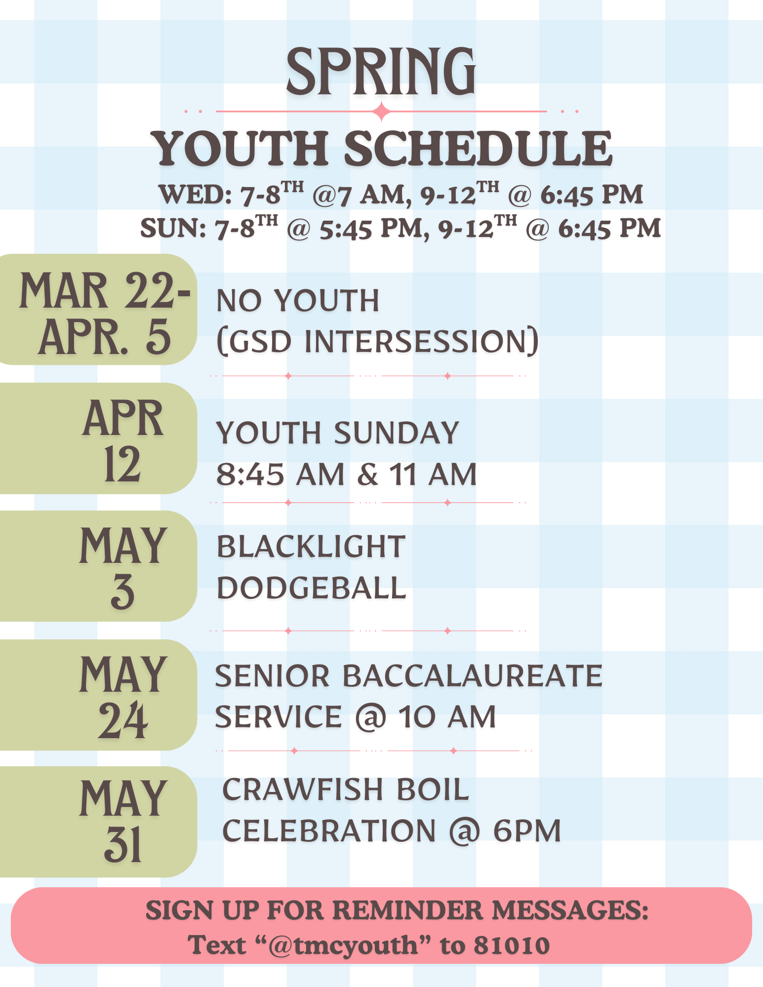 For more information, email Claire @ youth@trinitygulfport.com!